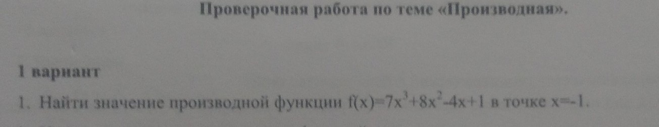 f(x)=7x^3+8x^2-4x+1\\f'(x)=21x^2+16x-4\\f'(-1)=21-16-4=1