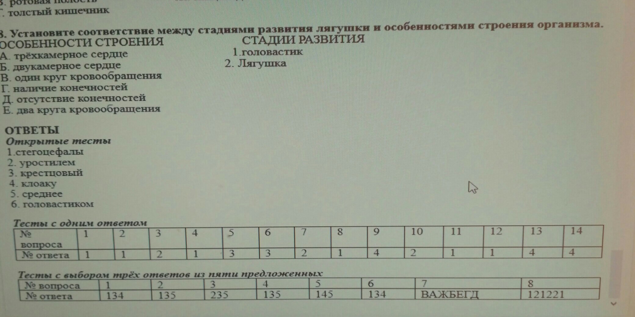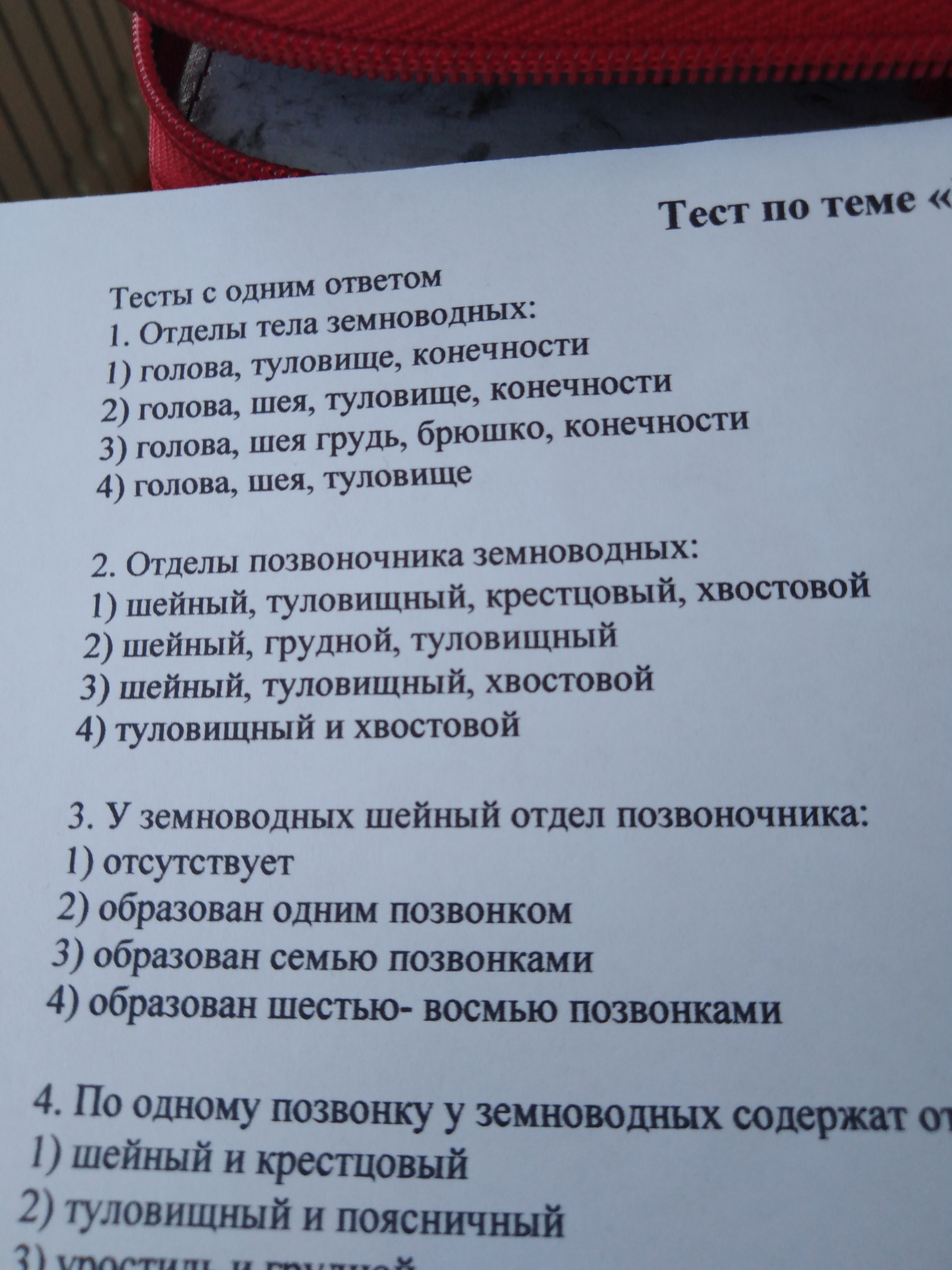1) 1 (у земноводных тело имеет 3 отдела: голову, туловище и конечности);