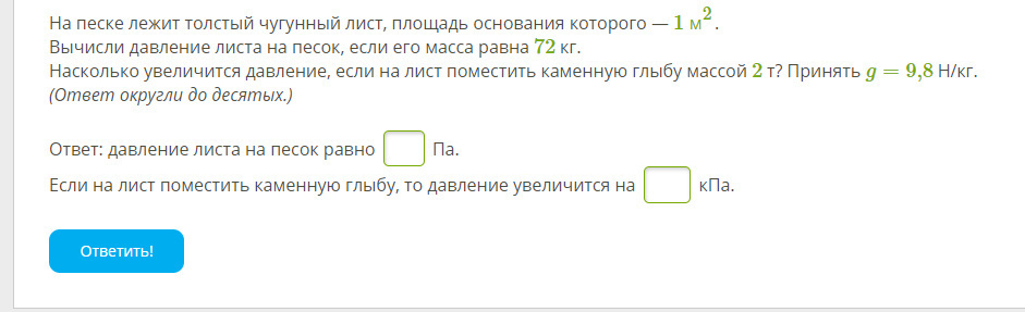 Если тонна то: 2000кг*10Н/кг/1кв.м=20000Па при условии что равномерно давит глыба