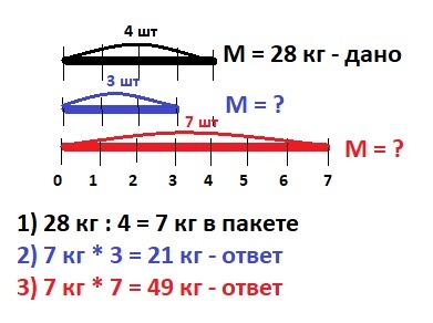 расписать задачу В 4 одинаковых по массе пакетах 28 кг вишни сколько килограммов вишни в 3 пакетах в 7 пакетах задачи расписать кратко