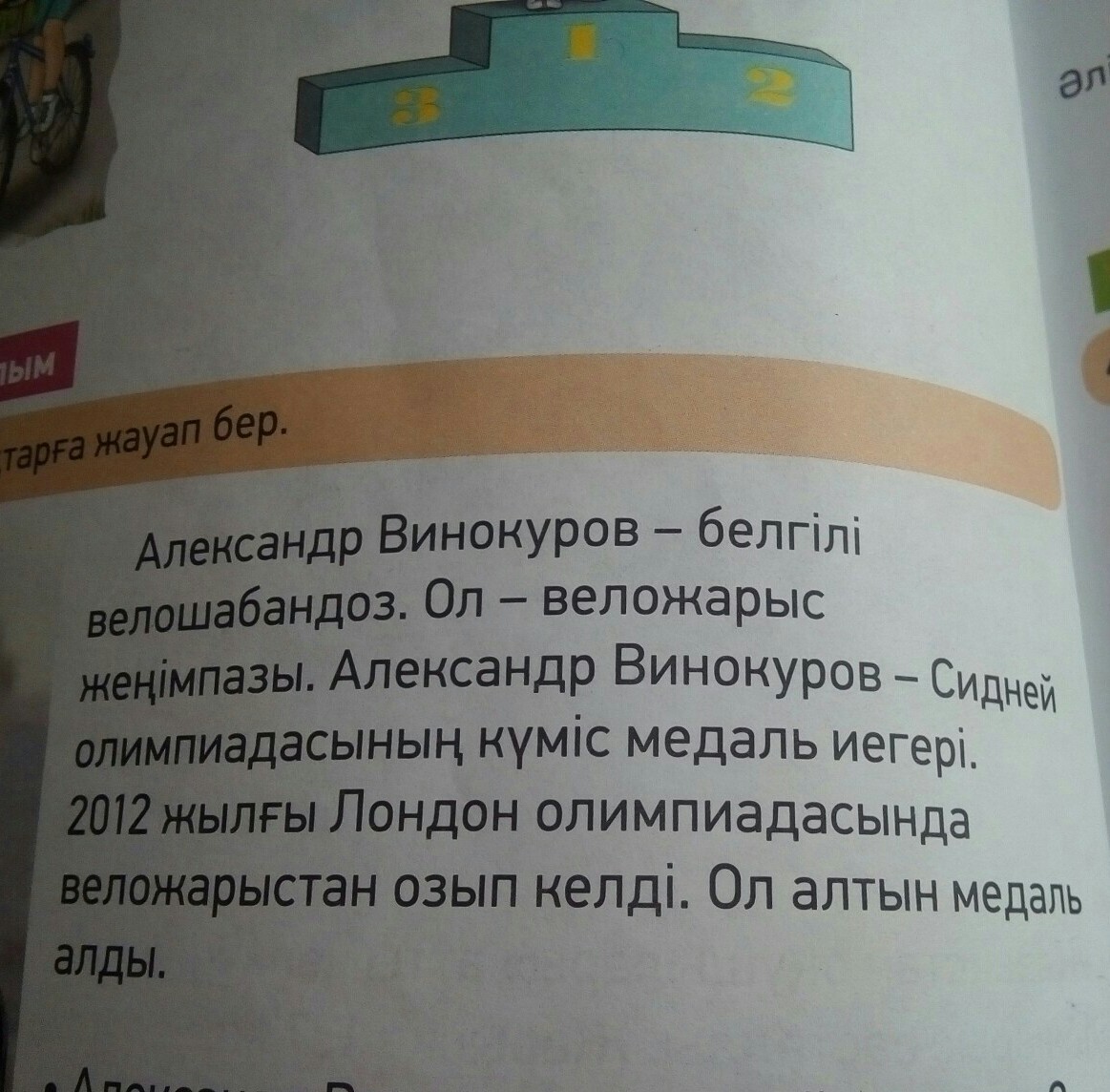 Александр Винокуров-известный велосипедист.Он победитель велосипедных гонок(состязаний).Александр Винокуров-обладатель серебрянной медали олимпиады Сидней.2012году в олимпиаде Лондана обогнал всех.Он получил золотую медаль