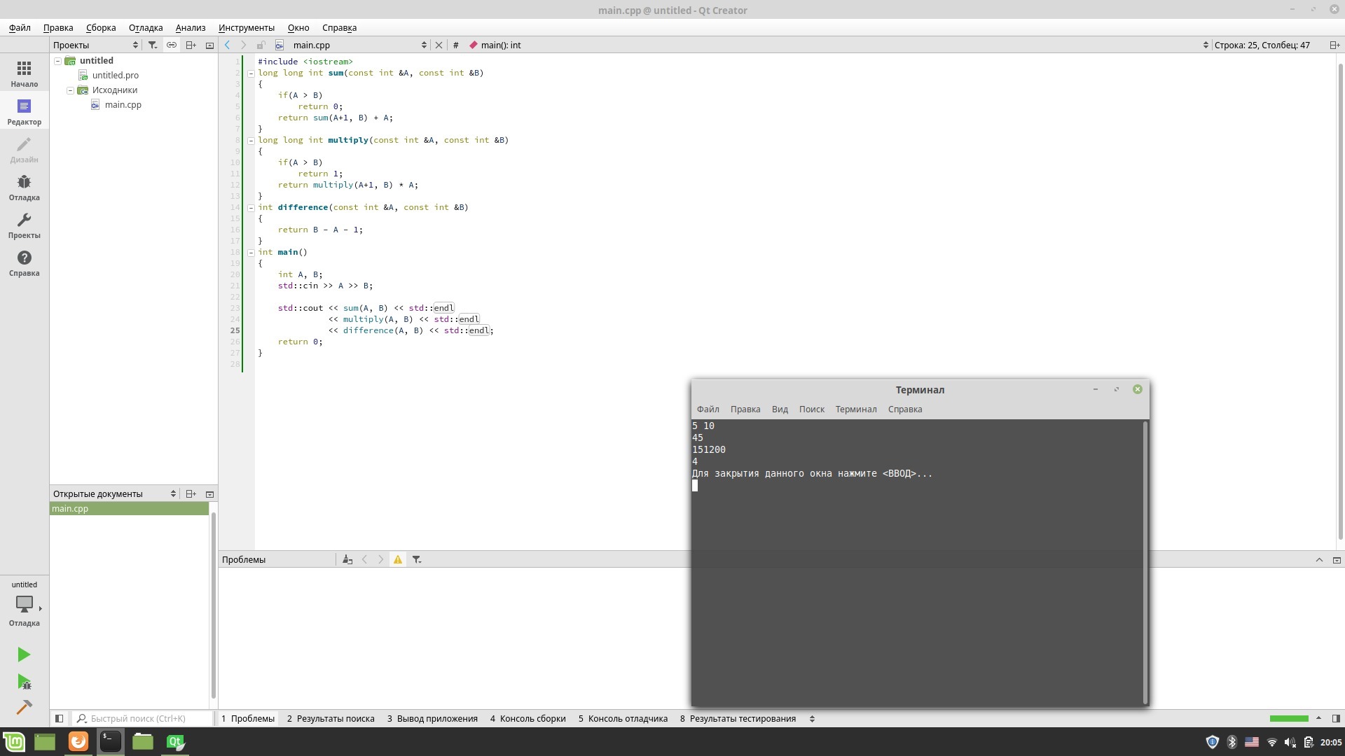 Суммы, произведения и количества чисел от А до В, где А и В задаёт пользователь.