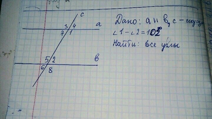 Угл5=угл2=180°-102°=78°(смежный угл)