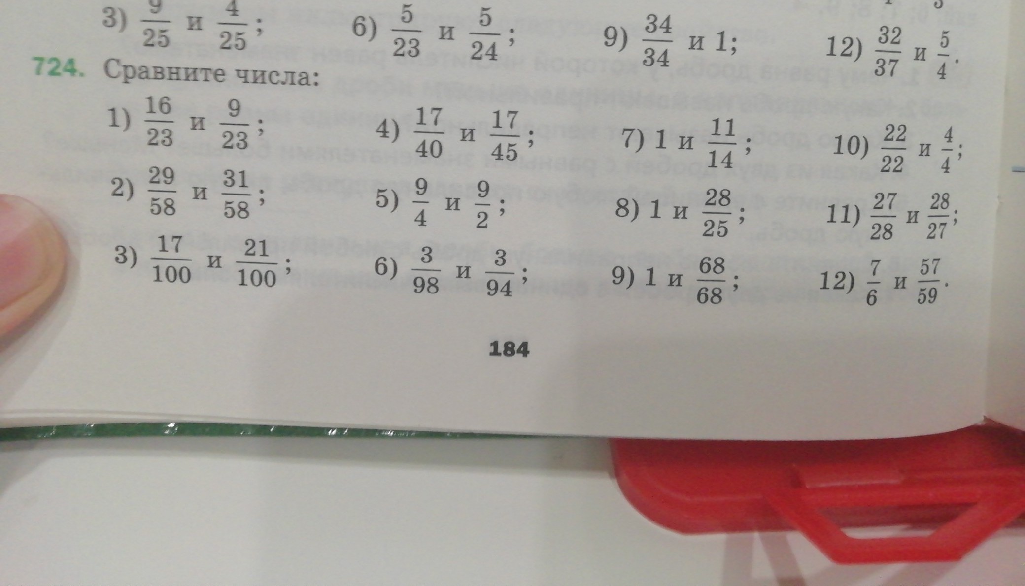 16/23 > 9/23 при одинаковом знаменателе больше та дробь у которой больше числитель