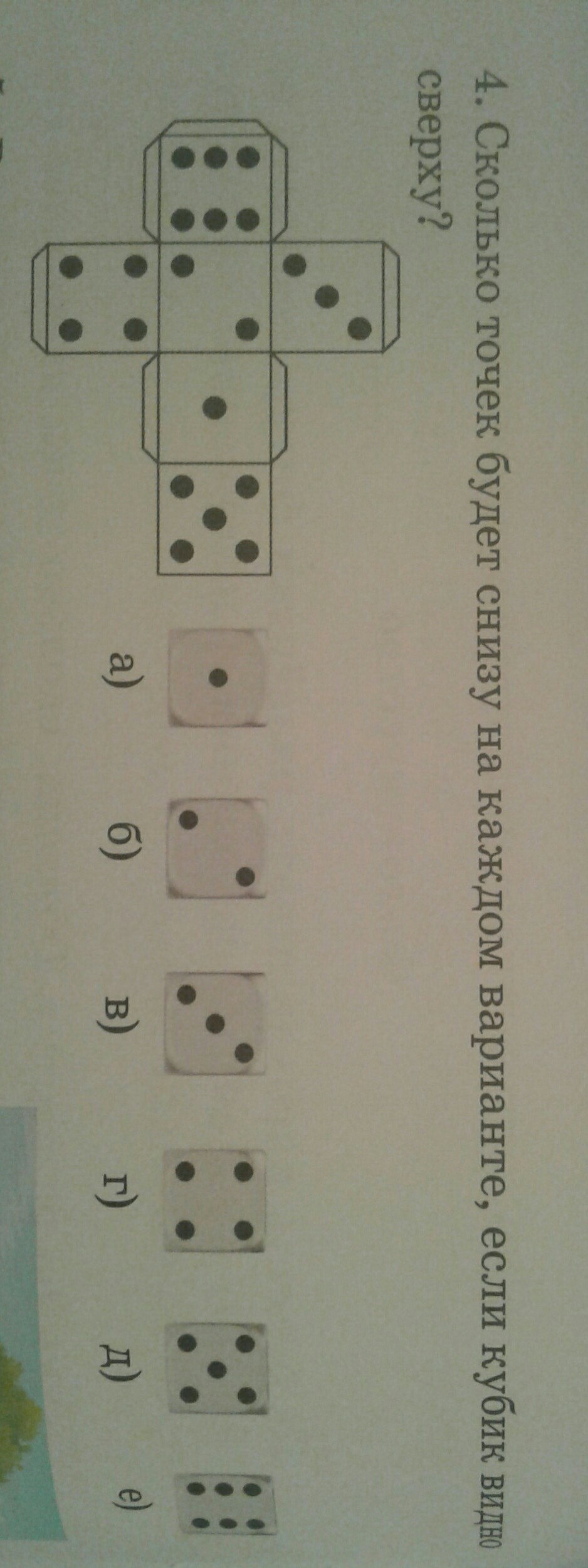 Пошаговое объяснение: в игральных кубиках количество точек на двух противоположных сторонах в сумме дает 7