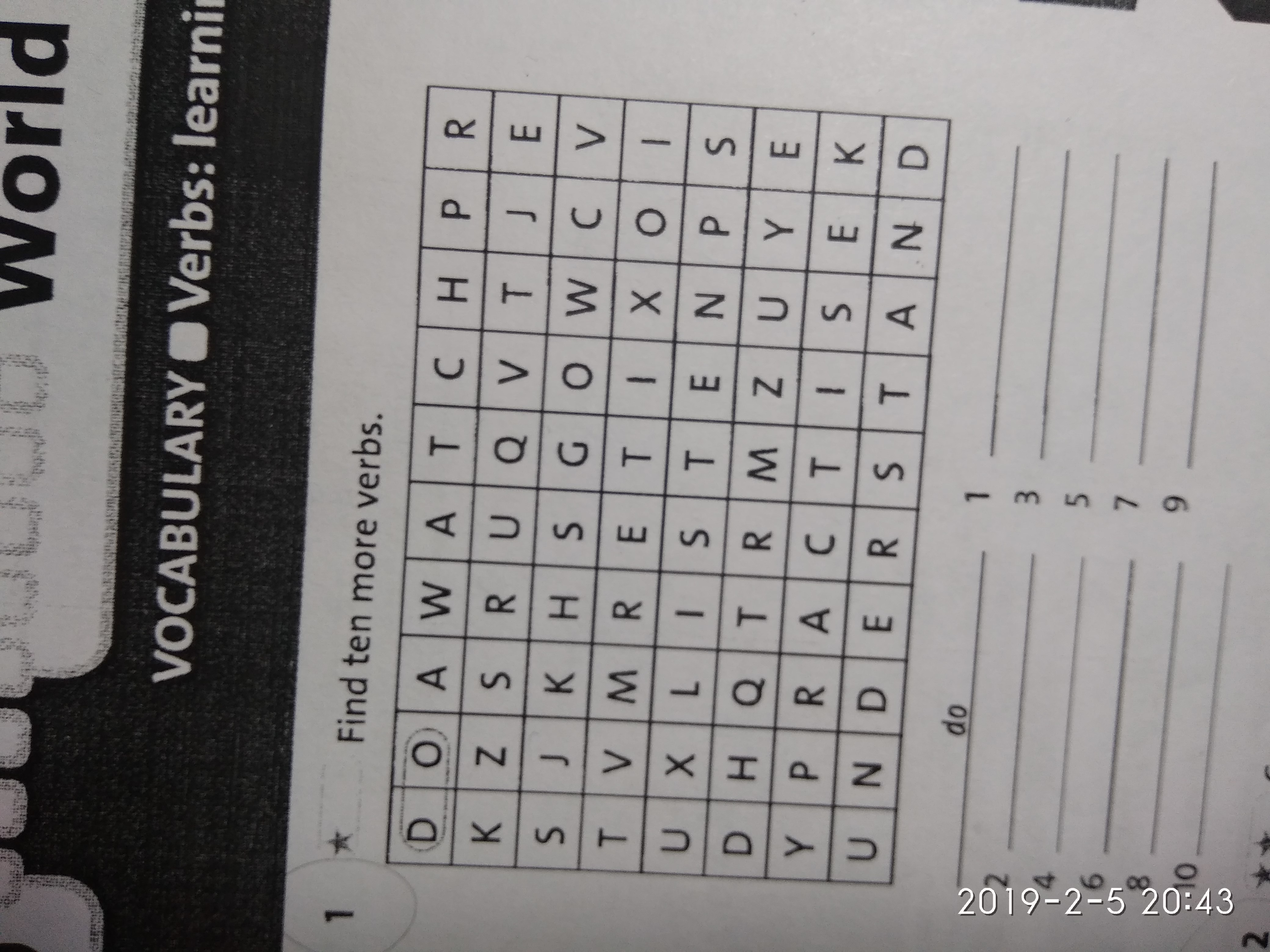 Watch,copy,stand,revise,go,ten, practise,listen, study,under