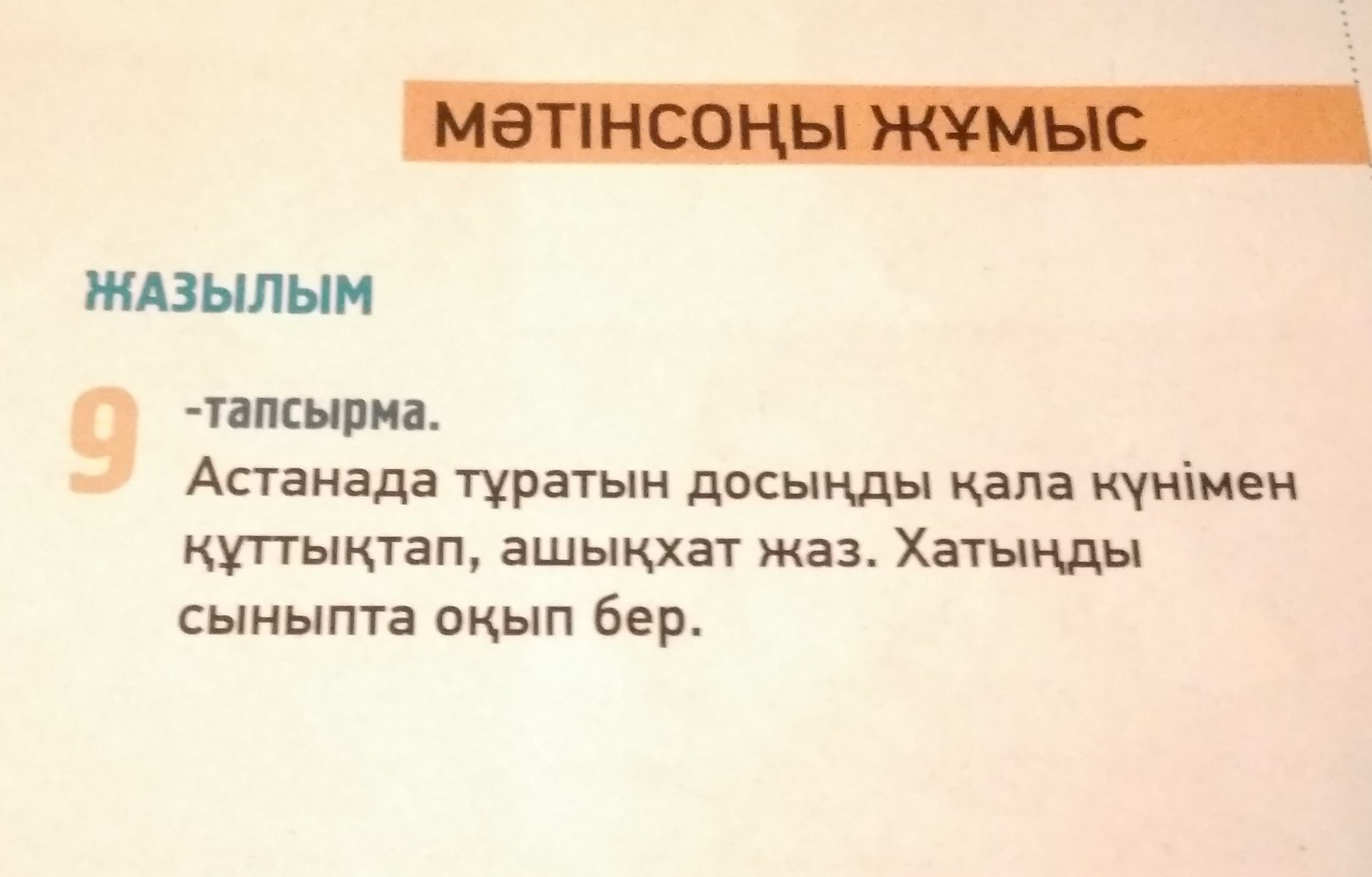 Сәлем досым! Мен саған және астана күніне арнап саған құттықтау хат жазып отырмын.