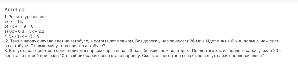 Ответ: всего в двух сараях первоначально было 60т сена