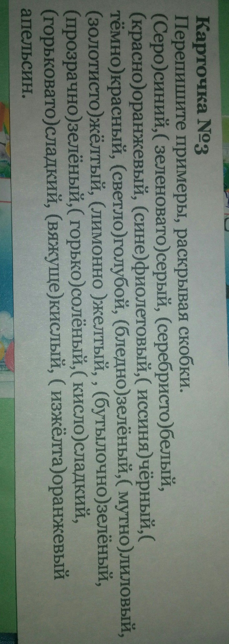 Пример: (Серо)синий - серо-синий, зеленовато-серый, серебристо-белый.