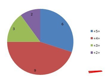 На диаграмме показаны результаты контрольной работы в 6 «В» классе. Сколько процентов ребят получило отметку выше «3»?