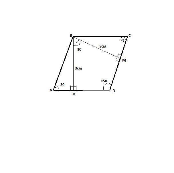 потив ∠А=30° лежит ВК=АВ/2⇒АВ=ВК*2=6см