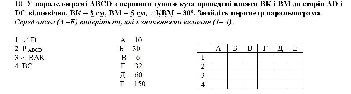 4)Р=2*(10+6)=32см