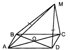 Плоскости АМС это типа треугольник. Где сторона АСэтого треугольника диагналь ромба ABCD.диогналы ромба перпендикулярны!!