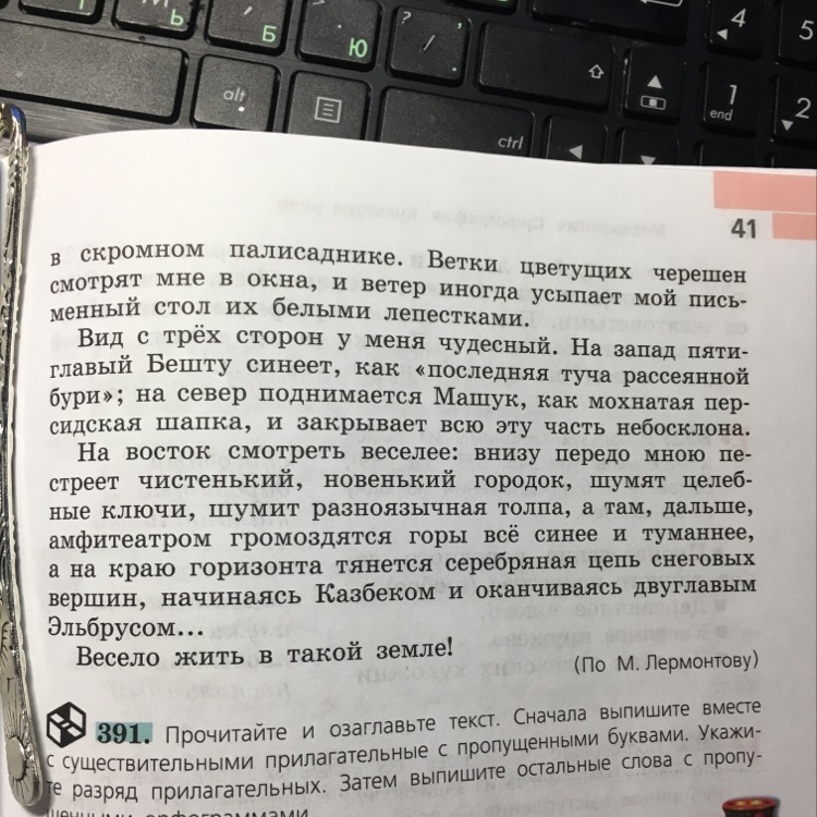 скромный палисадник,цветущие черешни,письменный стол,белые лепестки,чудесный вид,последняя туча,чистенький,новенький городок,целебные ключи,разноязычная толпа