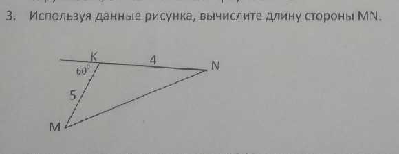 MN² = MK² + KN² - 2*MK*KN*Cos∠K