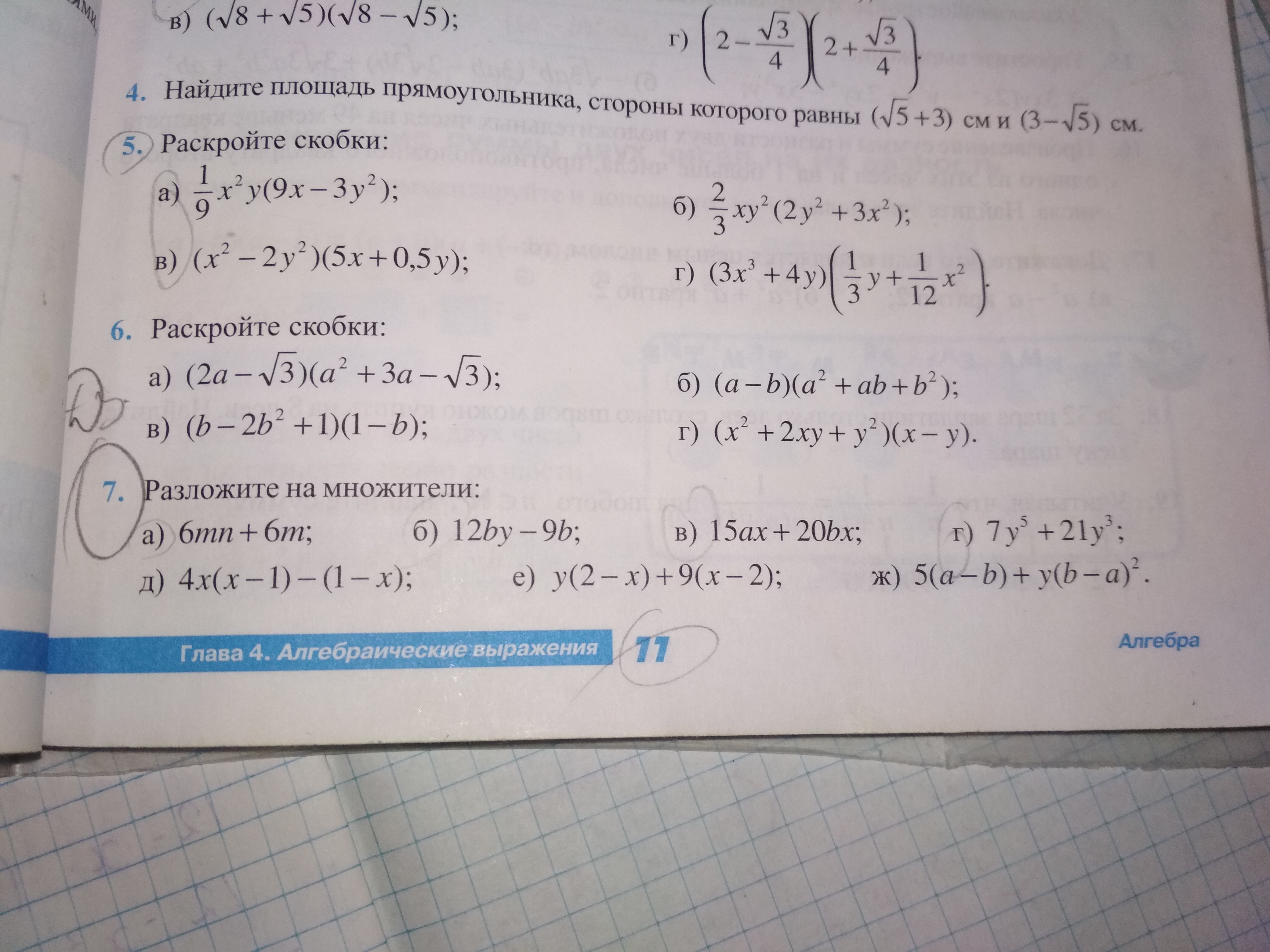 в)5x(3a+4b)