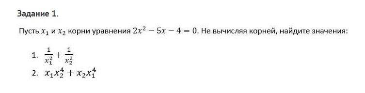 2x^2-5x-4=0; ; Rightarrow ; ; left { {{x_1+x_2=frac{5}{2}} atop {x_1cdot x_2=-frac{4}{2}}} right. ; ; left { {{x_1+x_2=2,5} atop {x_1cdot x_2=-2}} right.; left { {{(x_1+x_2)^2=6,25} atop {x_1cdot x_2=-2}} right. \\left { {{x_1^2+x_2^2+2x_1x_2=6,25} atop {x_1cdot x_2=-2}} right. ; left { {{x_1^2+x_2^2=6,25-2cdot (-2)} atop {x_1cdot x_2=-2}} right. ; left { {{x_1^2+x_2^2=10,25} atop {x_1cdot x_2=-2}} right. \\1); ; frac{1}{x_1^2}+frac{1}{x_2^2}=frac{x_1^2+x_2^2}{x_1^2cdot x_2^2}=frac{10,25}{(-2)^2}=frac{10,25}{4}=2,5625