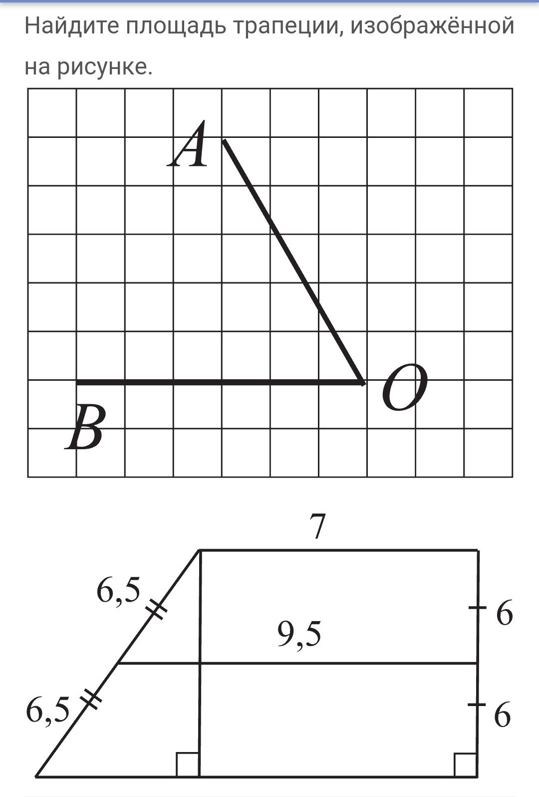 Площадь равна срединной линии (9,5) умноженной на высоту (6+6=12)