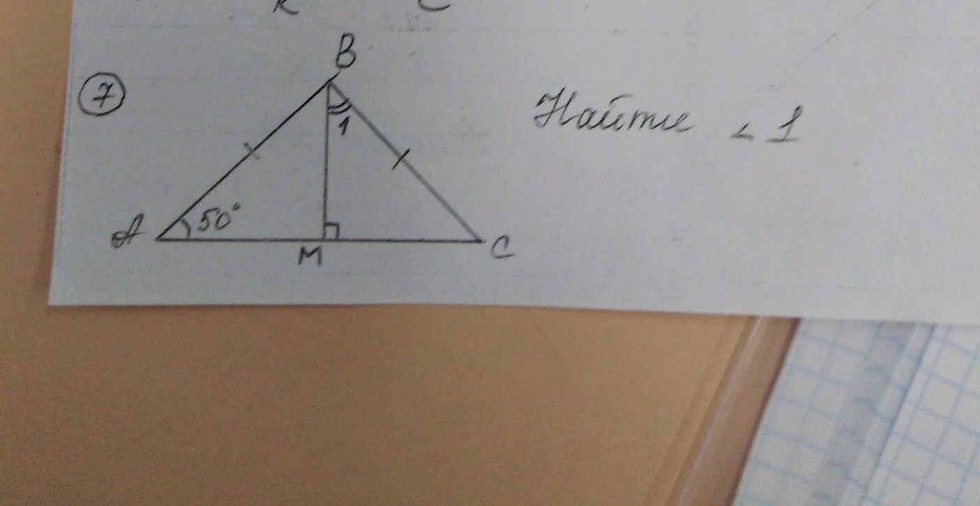 Кут АВМ = 90 градусів - кут ВАМ = 90-50= 40 градусів