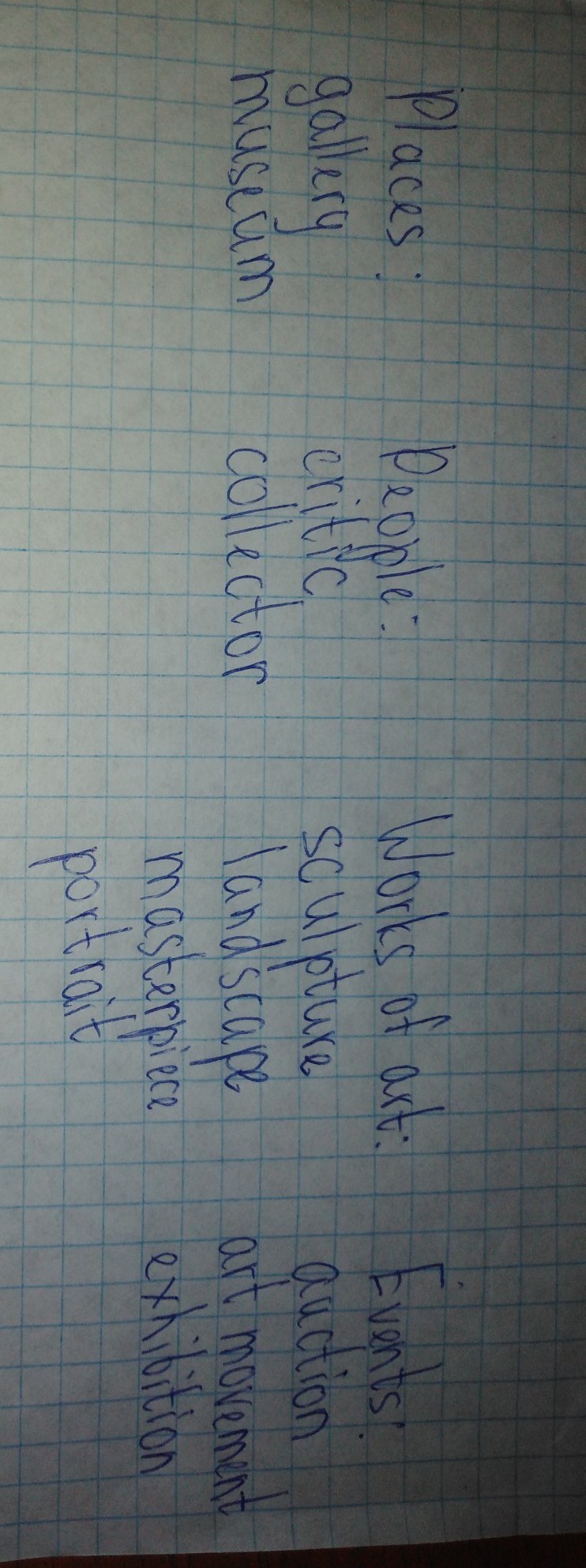 complete the table with the words in the box. which word doesn't go in any list? Then do the Art Quiz with a partner.