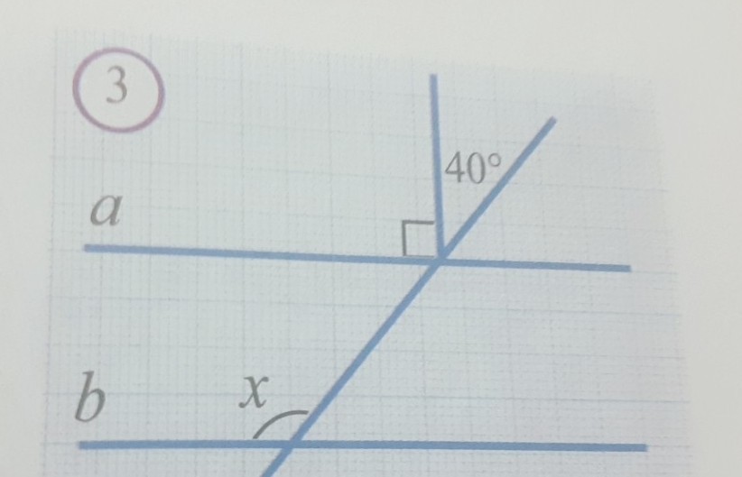 x=90+40=130 градусов, т.к углы при параллельных прямых и секущей.