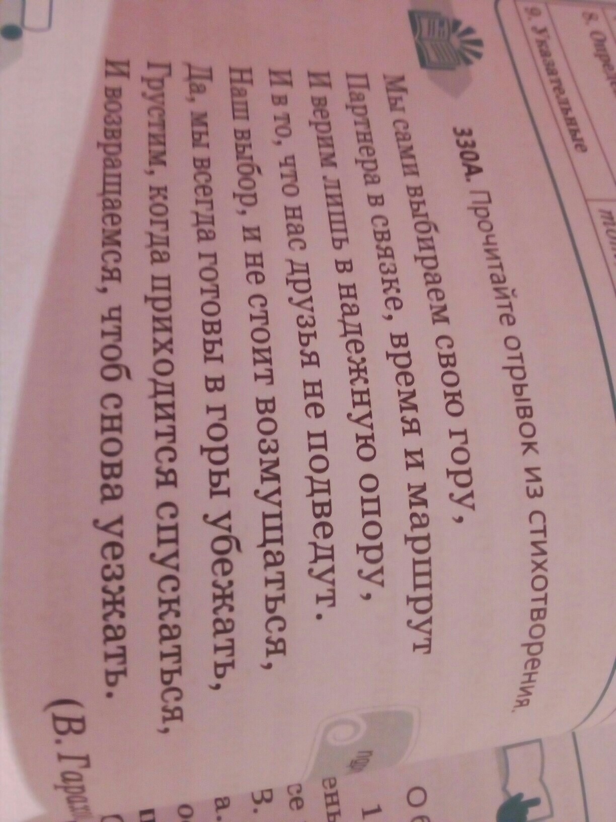 Помогите, пожалуйста ,по русскому языку.Пожалуйста.Выписать из стих-ия местоимения по разрядам:а) личные б) указательные в) притяжательные г) определительные