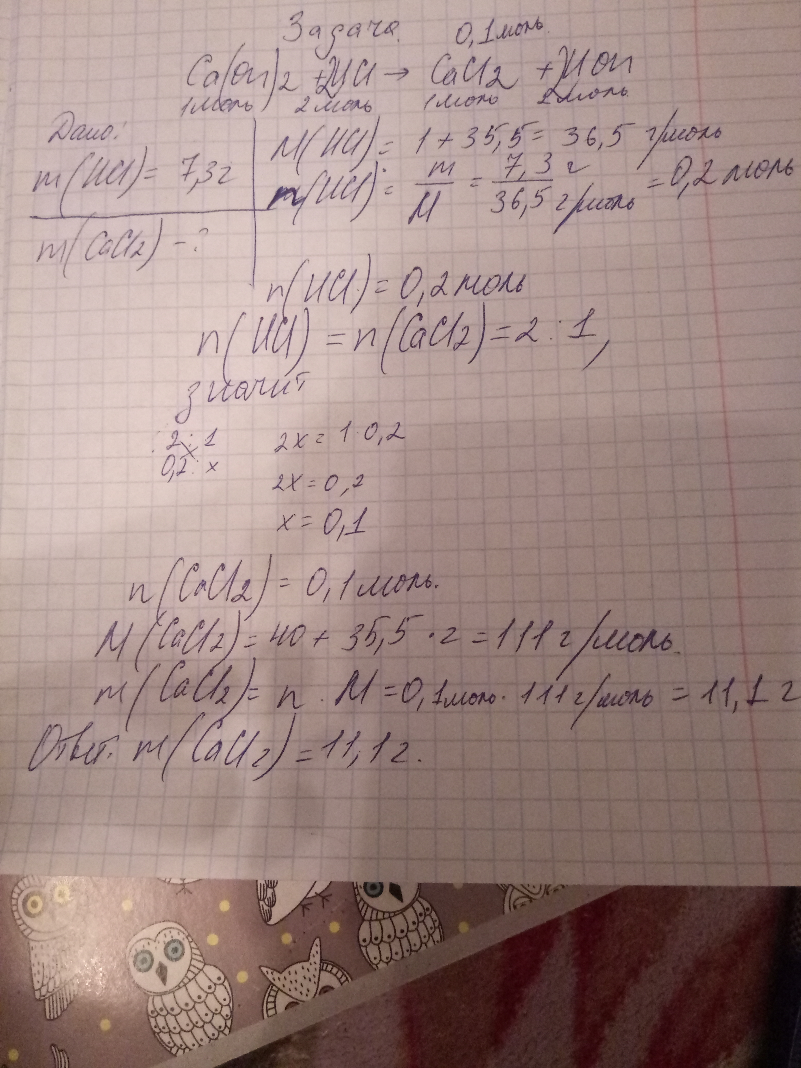1.В результате реакции соляной кислоты с гидроксидом кальция образуются два продукта — хлорид кальция и вода. Сколько граммов соли можно получить, если в реакцию вступит 7,3 г кислоты?