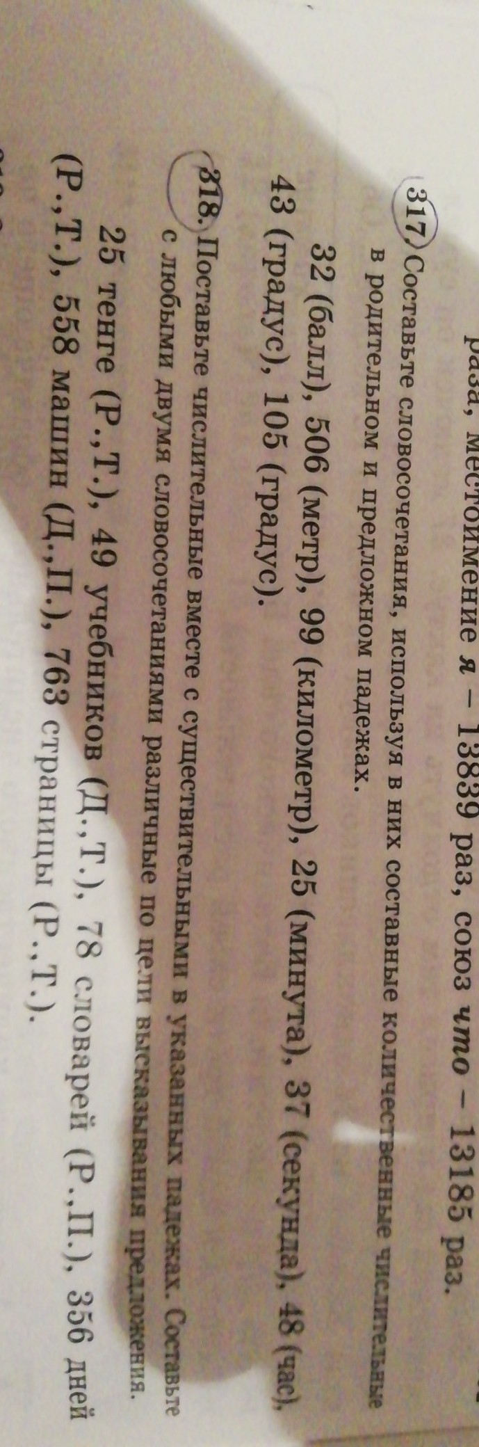 317. Тридцать два балла, пятьсот шесть метров, девяносто девять километров, двадцать пять минут, тридцать семь секунд, сорок восемь часов, сорок три градуса, сто пять градусов