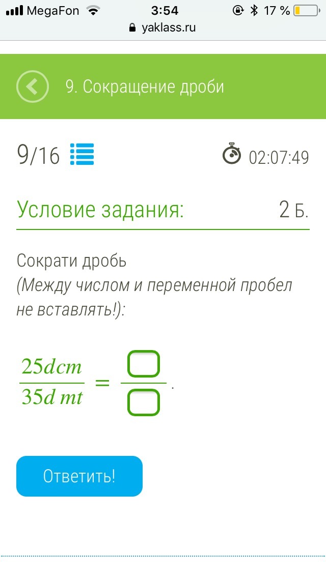Имеем право разделить числитель и знаменатель на одно и то же число. Пусть это будет 5dm