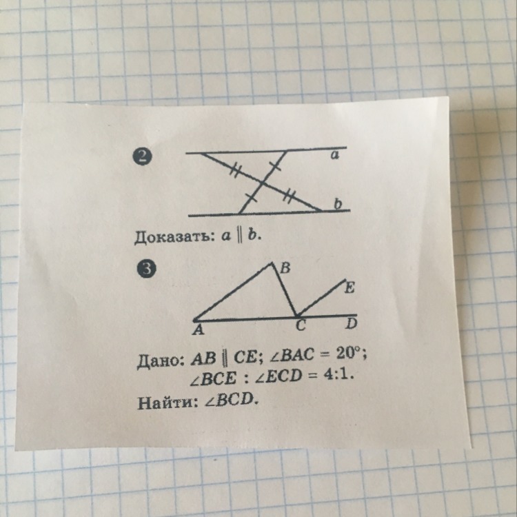 2. Треугольники равны по признаку рав-ва 2х сторон и вертикальных углов между ними, значит внутренние накрестлежащие углы равны -признак параллельности, следовательно а||в