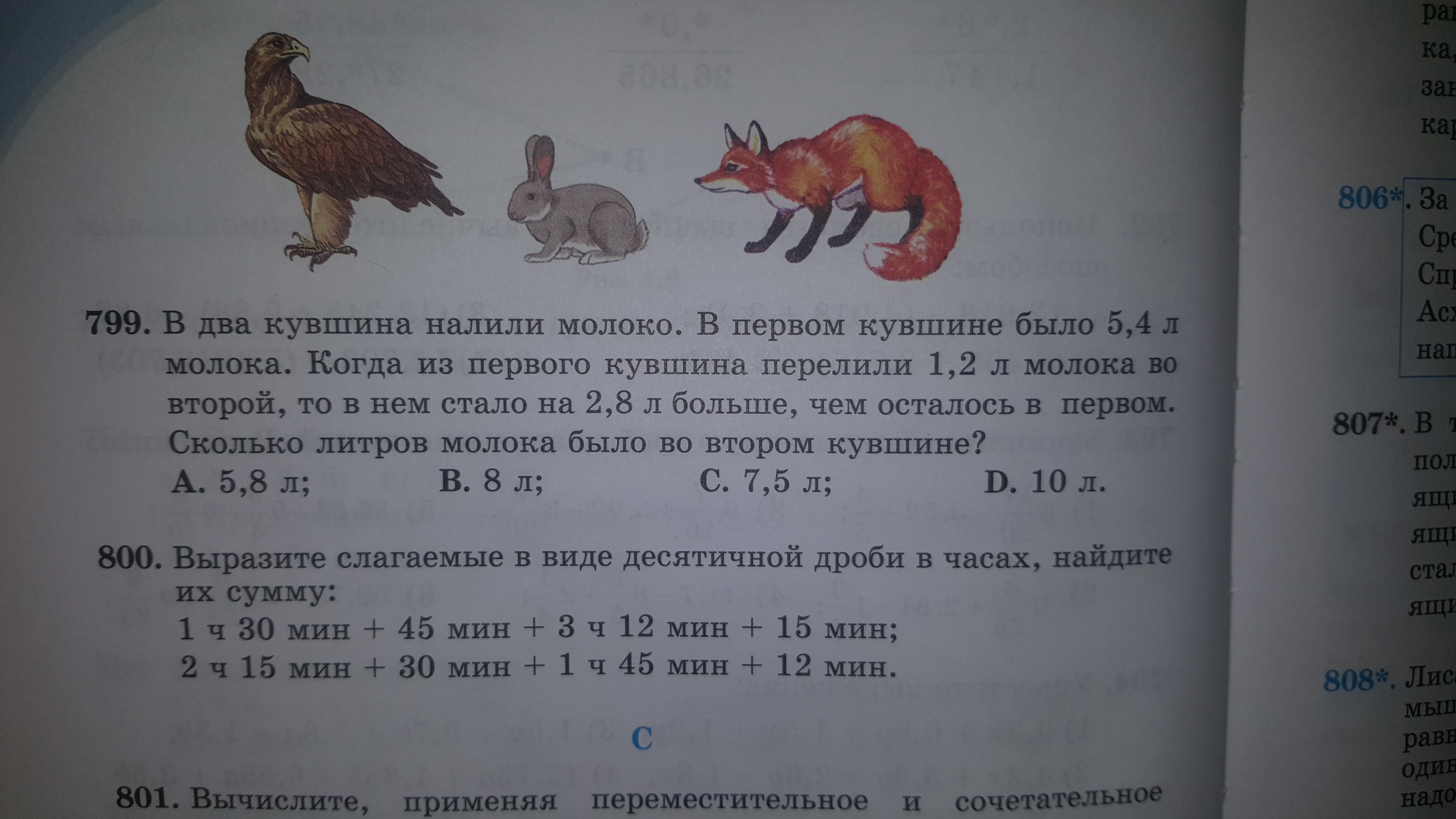 7 - 1,2 = 5,8 л молока было во втором кувшине
