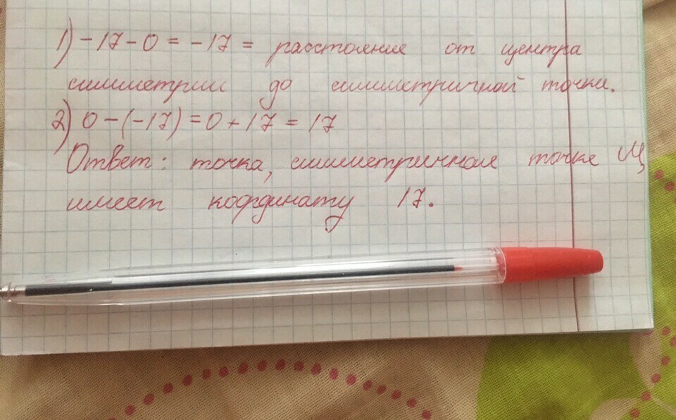 Укажи точку, симметричную относительно этого центра точке M(−17).