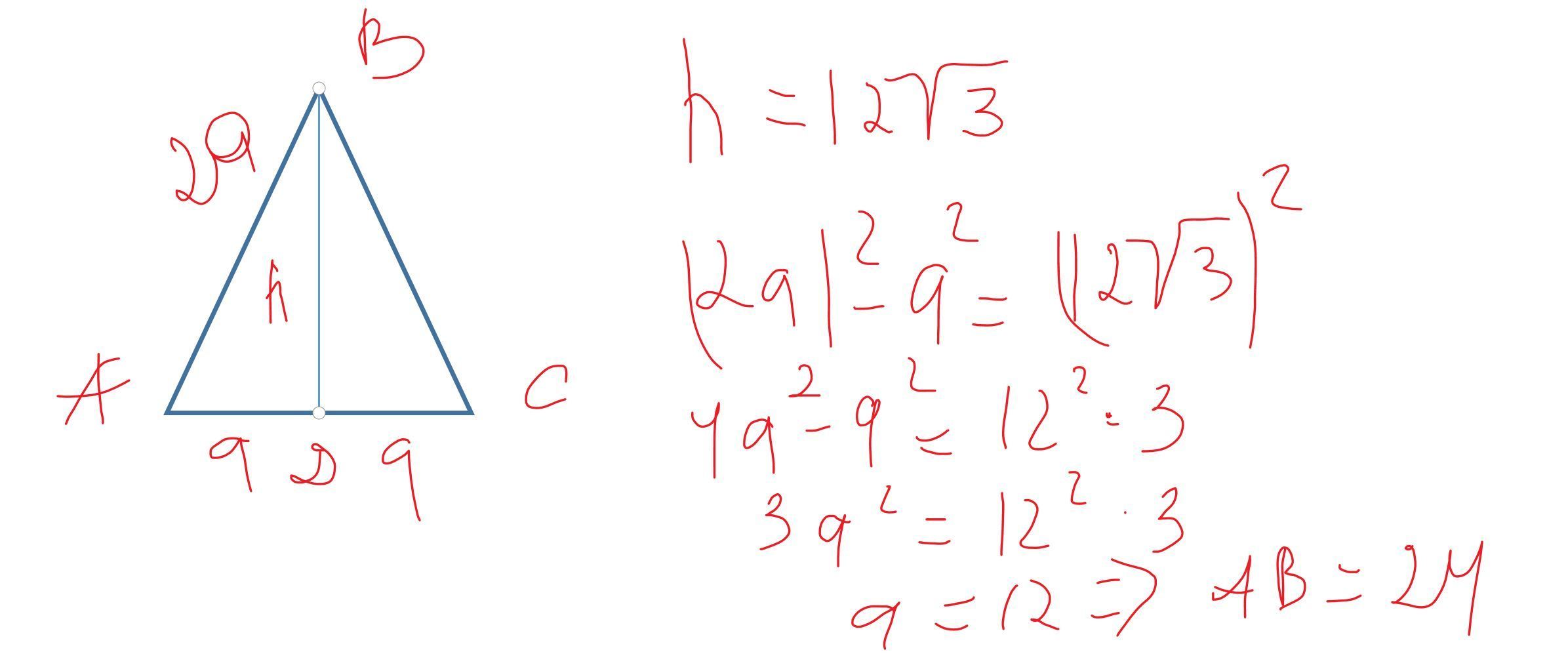 биссектриса равностороннего треугольника равна 12 корней из 3 Найдите сторону этого треугольника