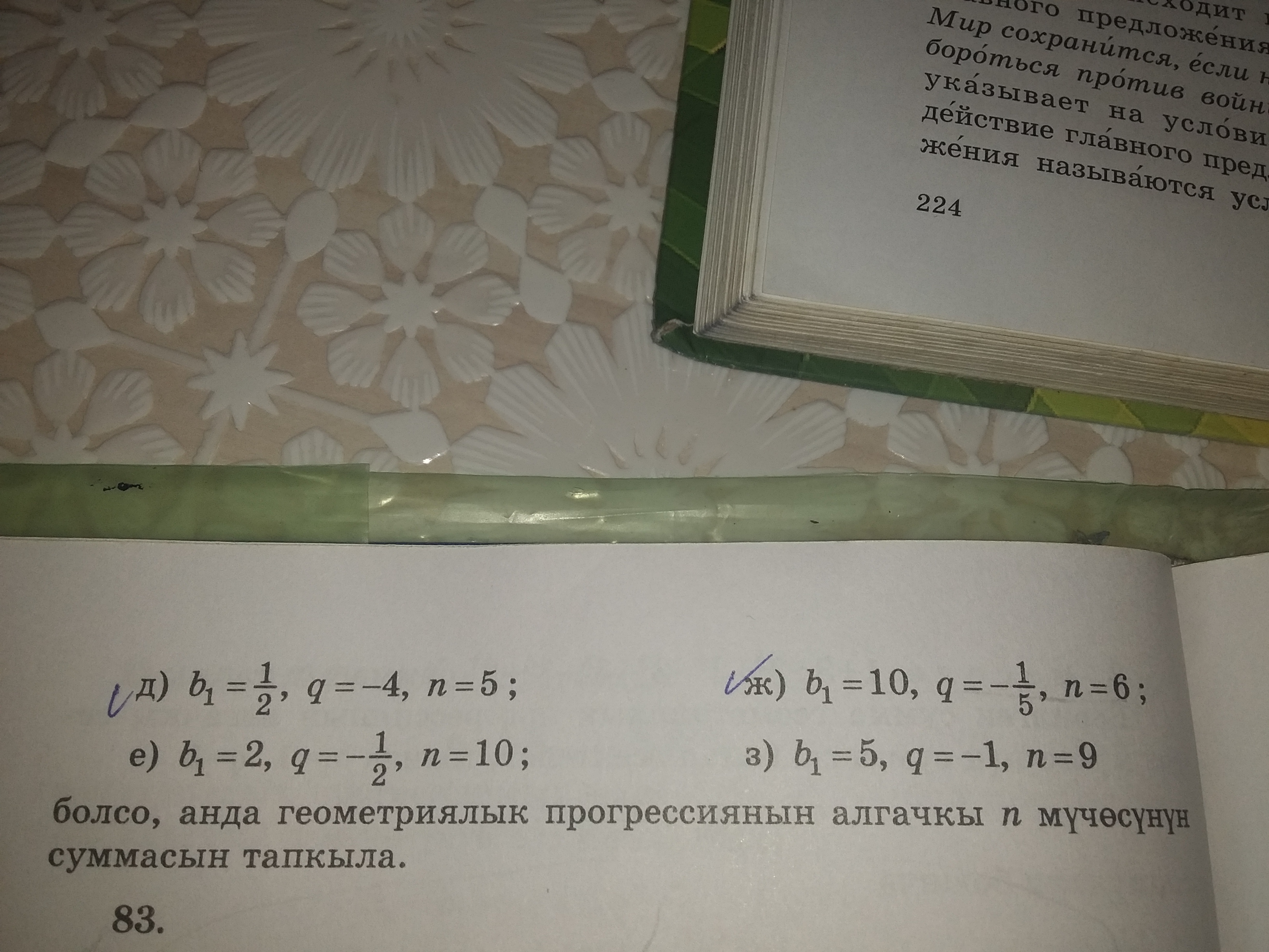 Найдите первую сумму (n) члена геометрической прогрессии .Сделайте с а),до з) пожалуйста.Дам 57баллов