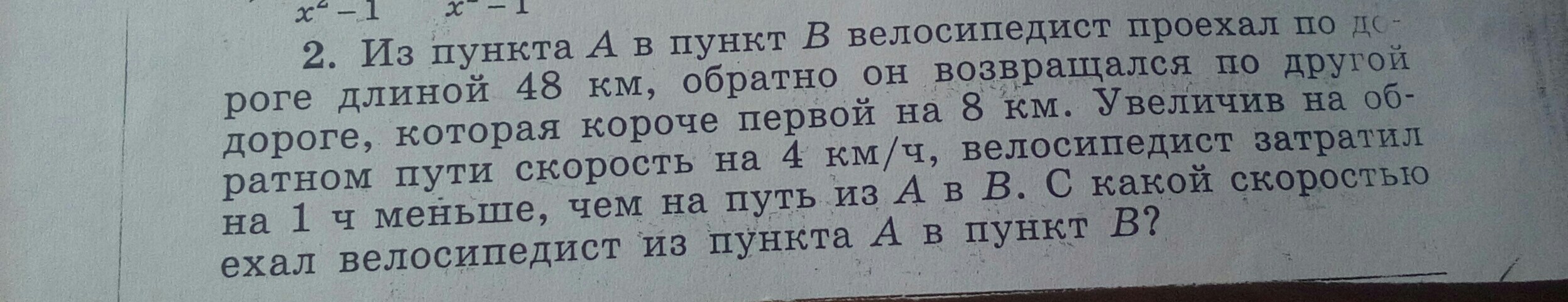 16 (км/ч) - скорость велосипедиста из пункта А в пункт В