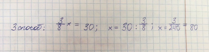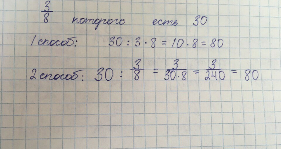 30 : 3/8 = 30 * 8 / 3 = 80.