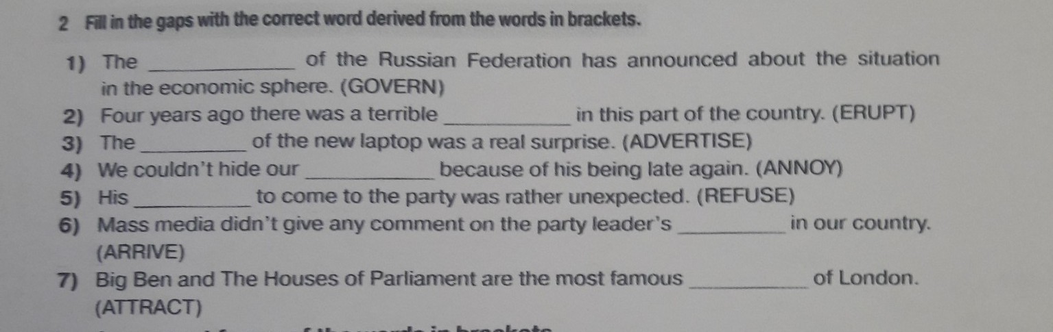 2 Fill in the gaps with the correct word derived from the words in brackets.