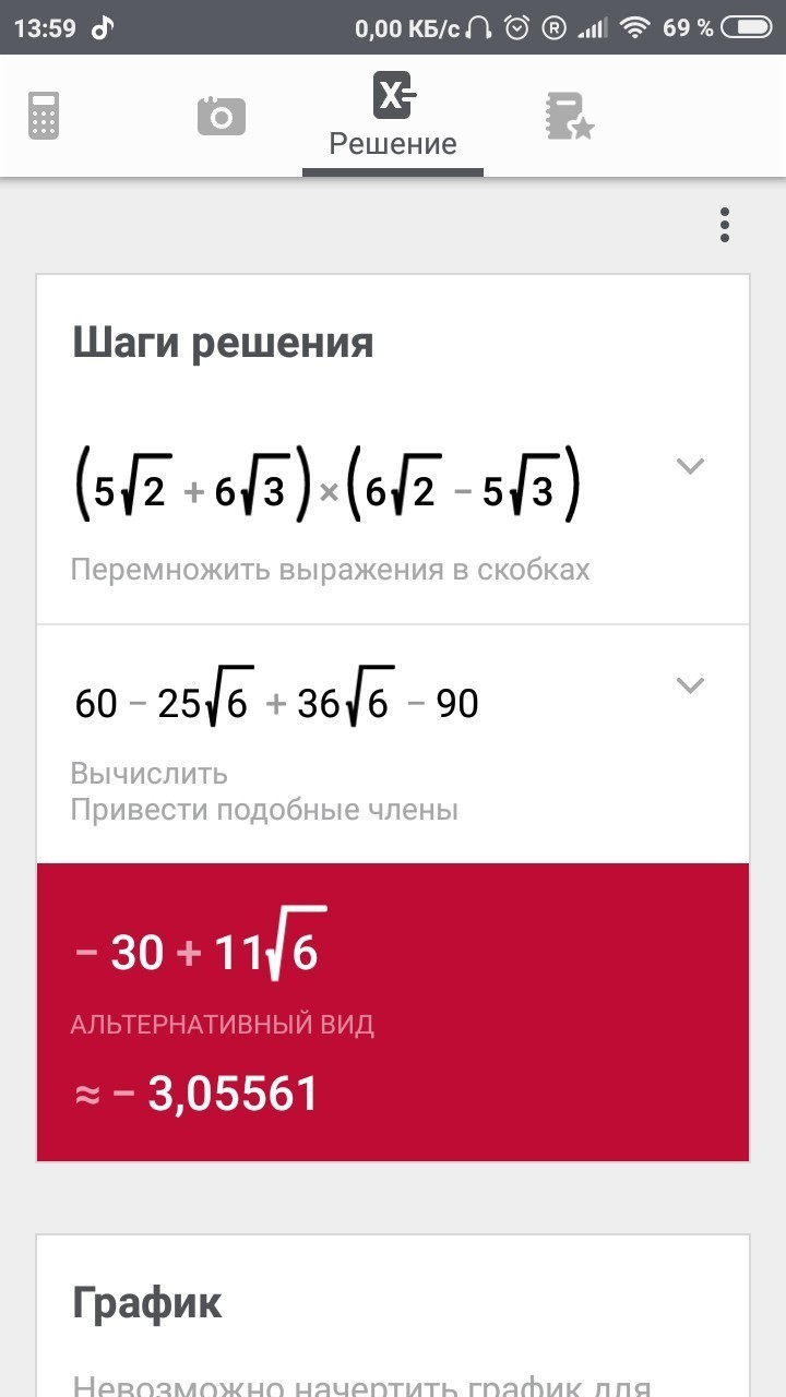 (5√2+6√3)(6√2-5√3)= 5√2*6√2 – 5√2*5√3 +6√3*6√2 -6√3*6√3 =