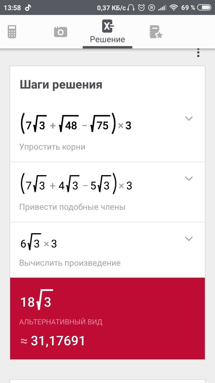 (7√3+√48-√75)*√3= (7√3+√(16*3)-√(25*3)*√3 = (7√3+4√3-5√3)*√3= 6√3*√3= 6*3=18
