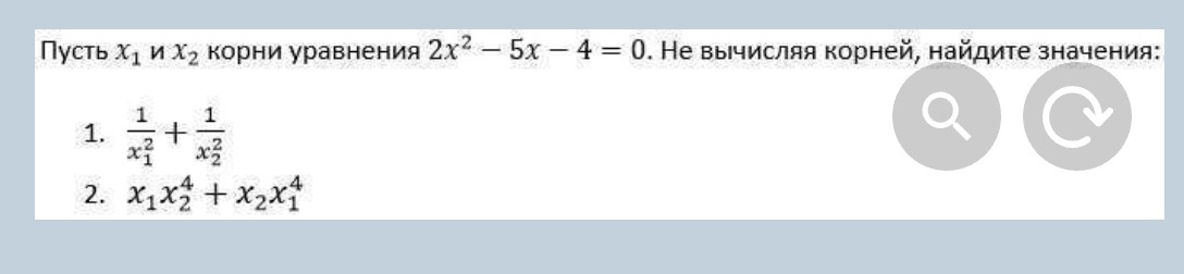 2x²-5x-4=0,x1+x2=5/2=2,5; x1x2= -2 по т.Виета.
