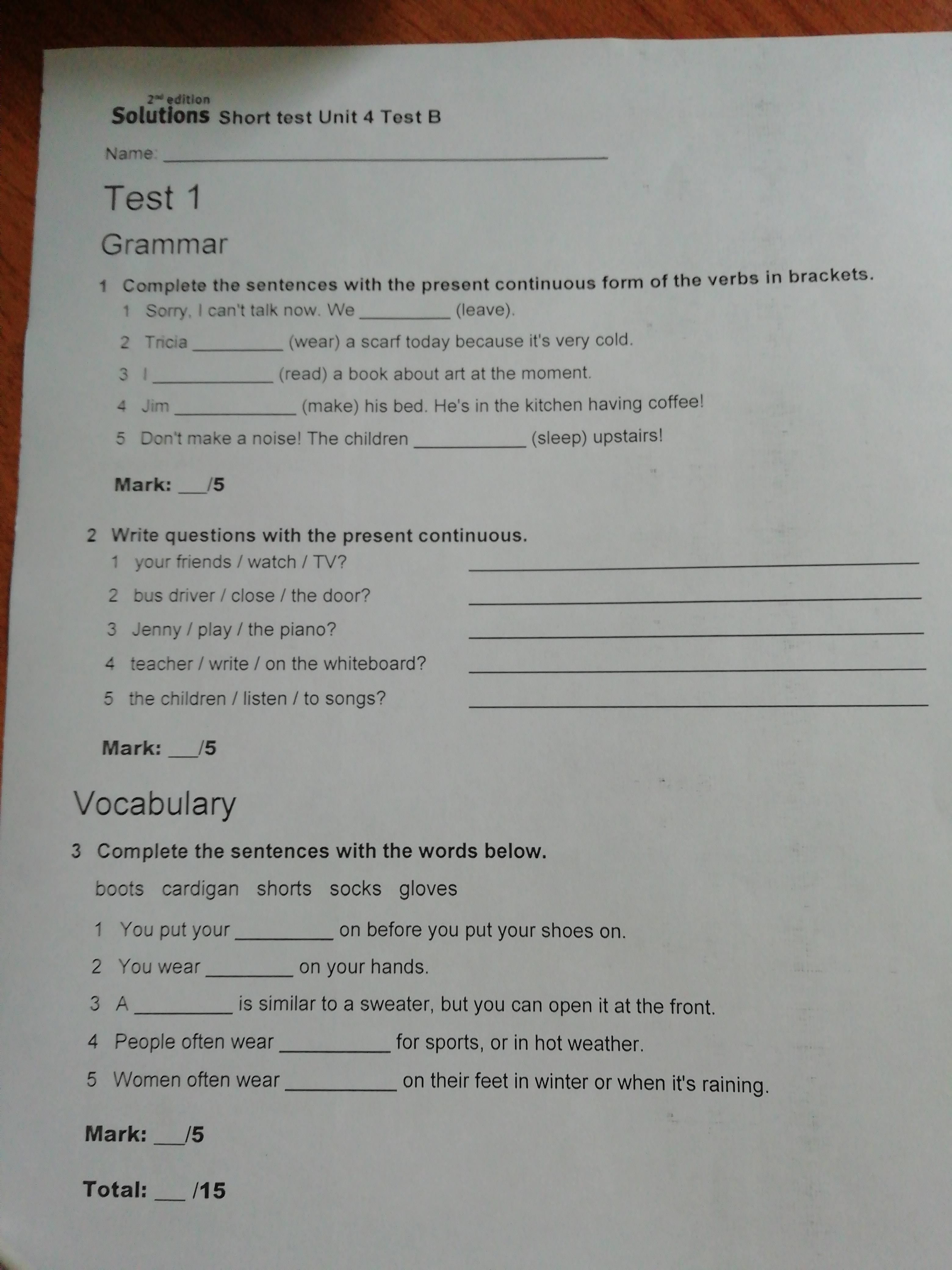 1 are leaving 2 is wearing 3 am reading 4 is making 5 are sleeping