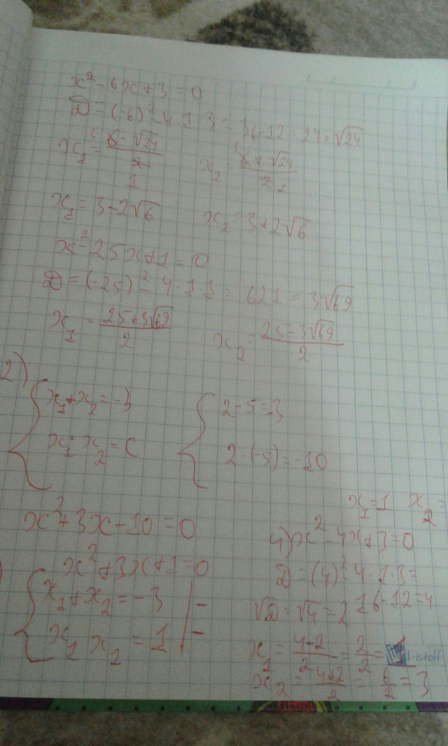 По т.Виета видно корни: x1 = 3, x2 = 1
