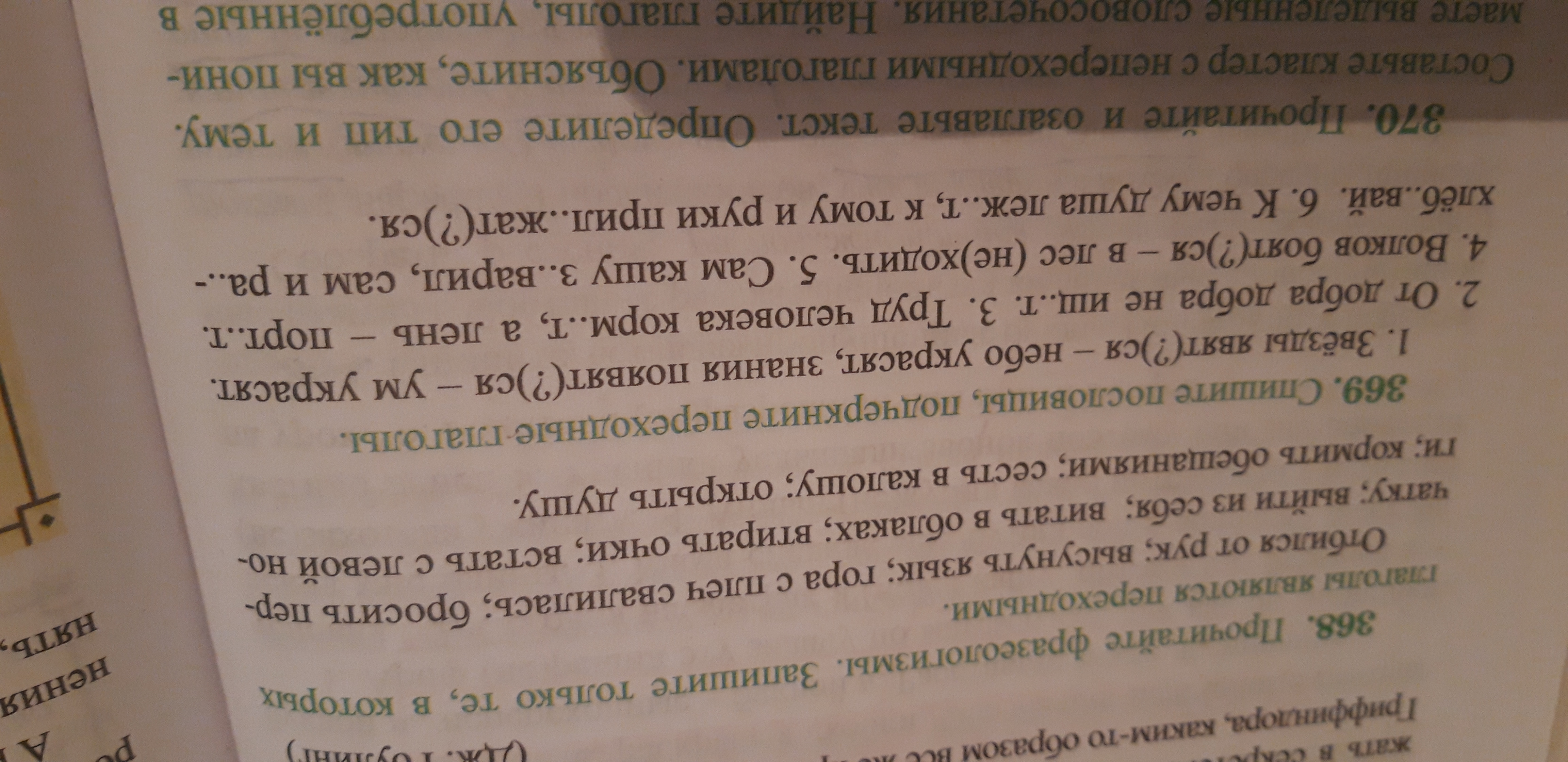отбился (от чего?) от рук, высунул (что?) язык, бросить (что?) перчатку, втирать (что?) очки, открыть (что?) душу