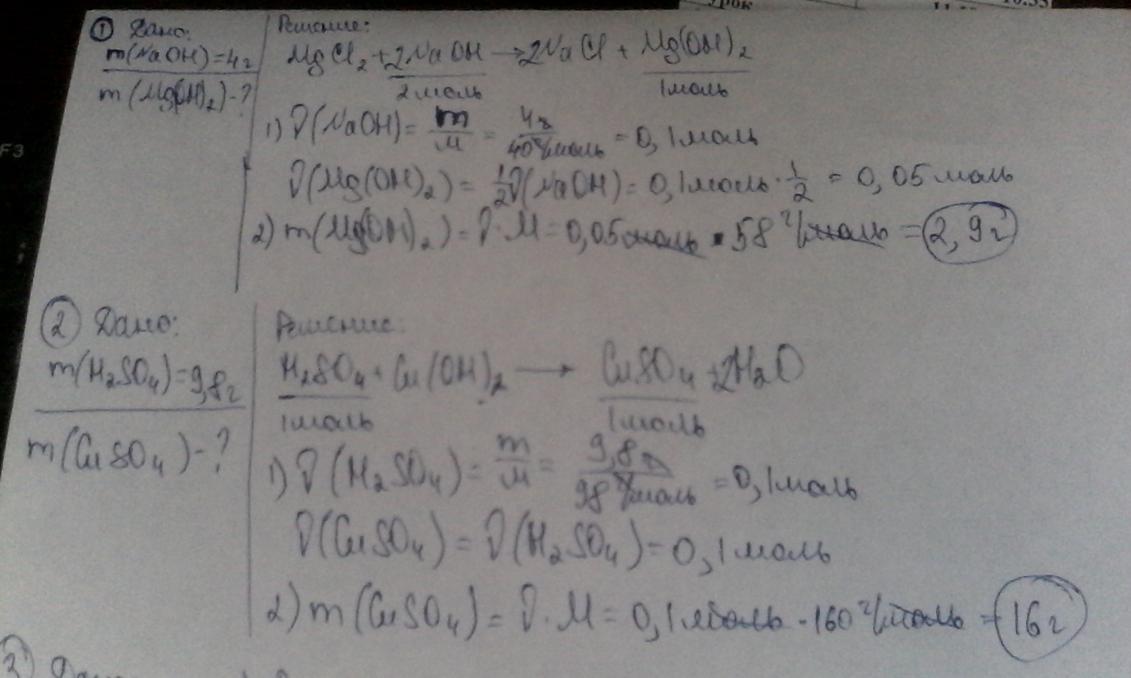 2. Найти массу соли, которая образуется при взаимодействии 9,8г серной кислоты с гидроксидом меди.