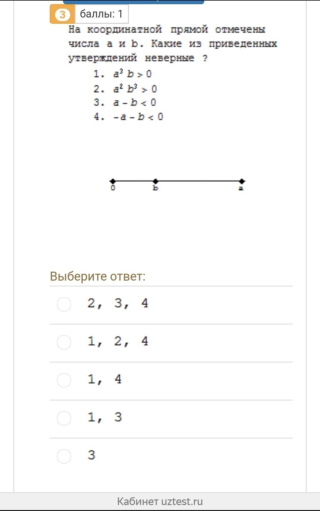 3) поскольку число a больше b и они оба положительны, то не может быть отрицательного ответа, не верно