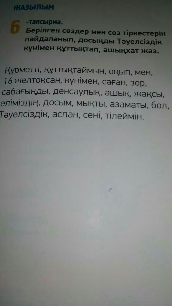 Құрметті тәуелсіздік елімен құттықтаймын! Еліміздегі адамдар ашық , мықты , болсын!