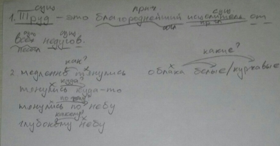 2.медленно тянулись куда-то по глубокому небо белые курчавые облака.