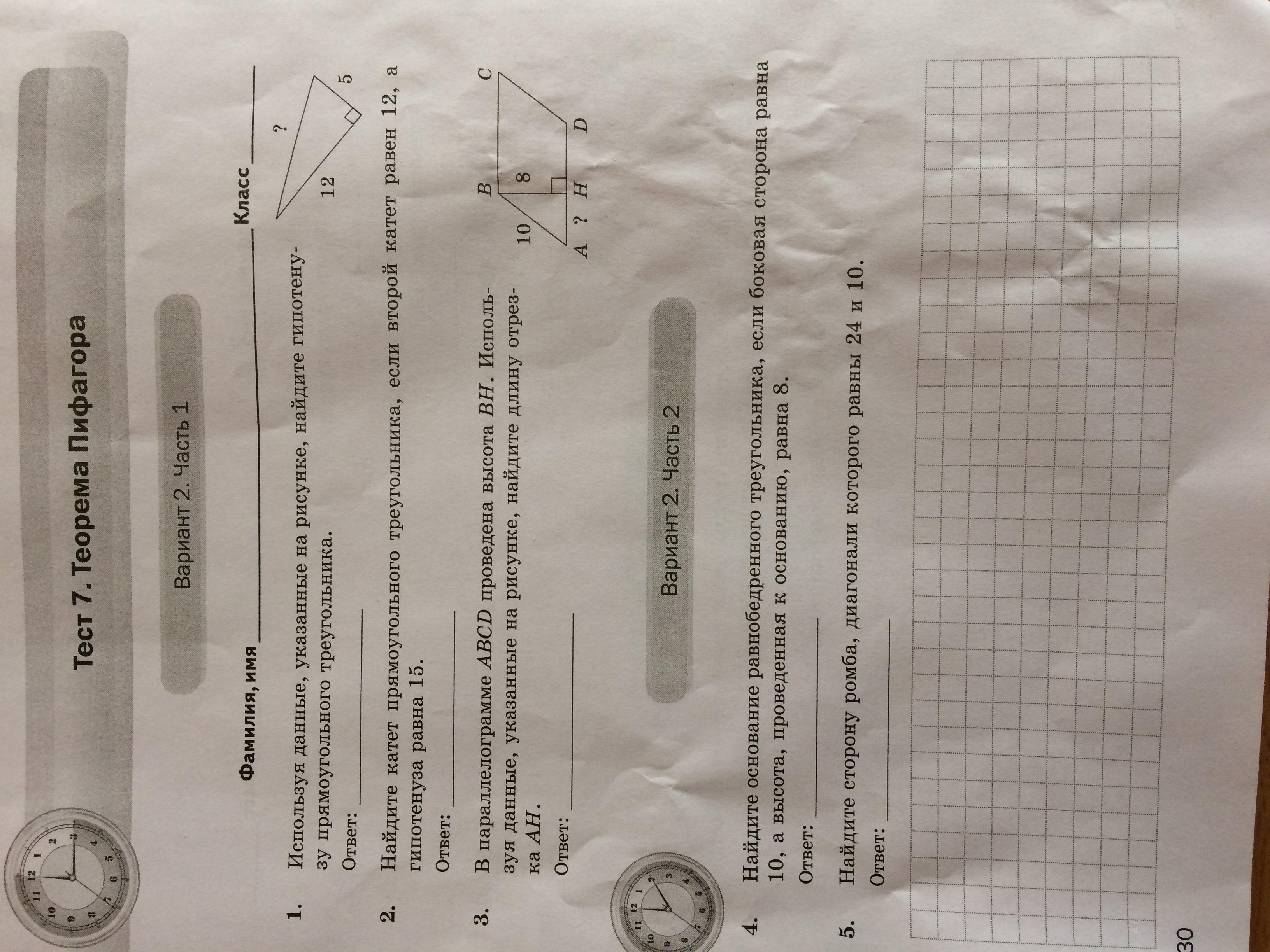 1) По теореме Пифагора, гипотенуза² = катет(1)² + катет(2)²