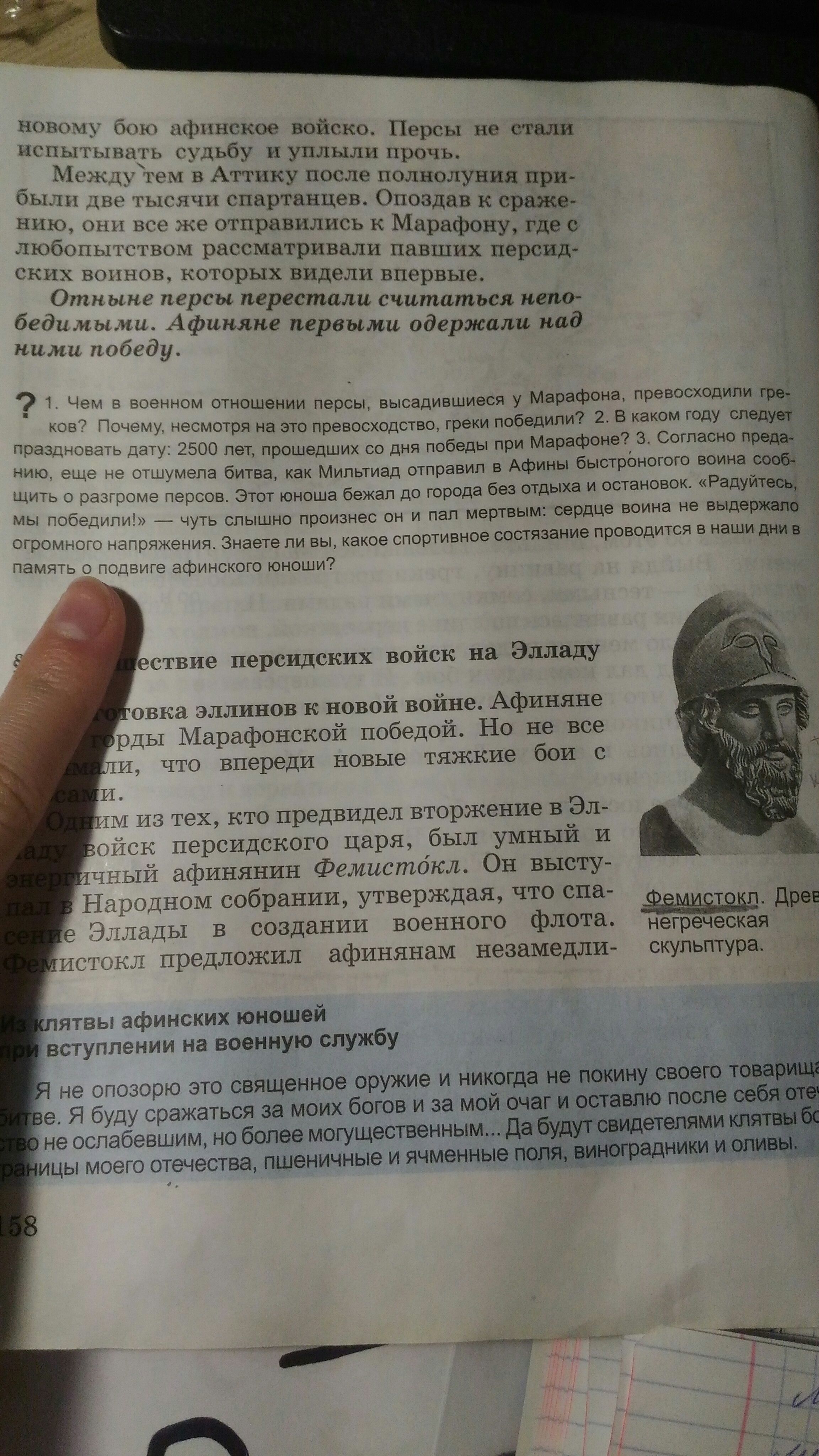 1. Чем в военном отношении персы, высадившиеся у Марафона, превосходили греков? Почему, несмотря на это превосходство, греки победили?
