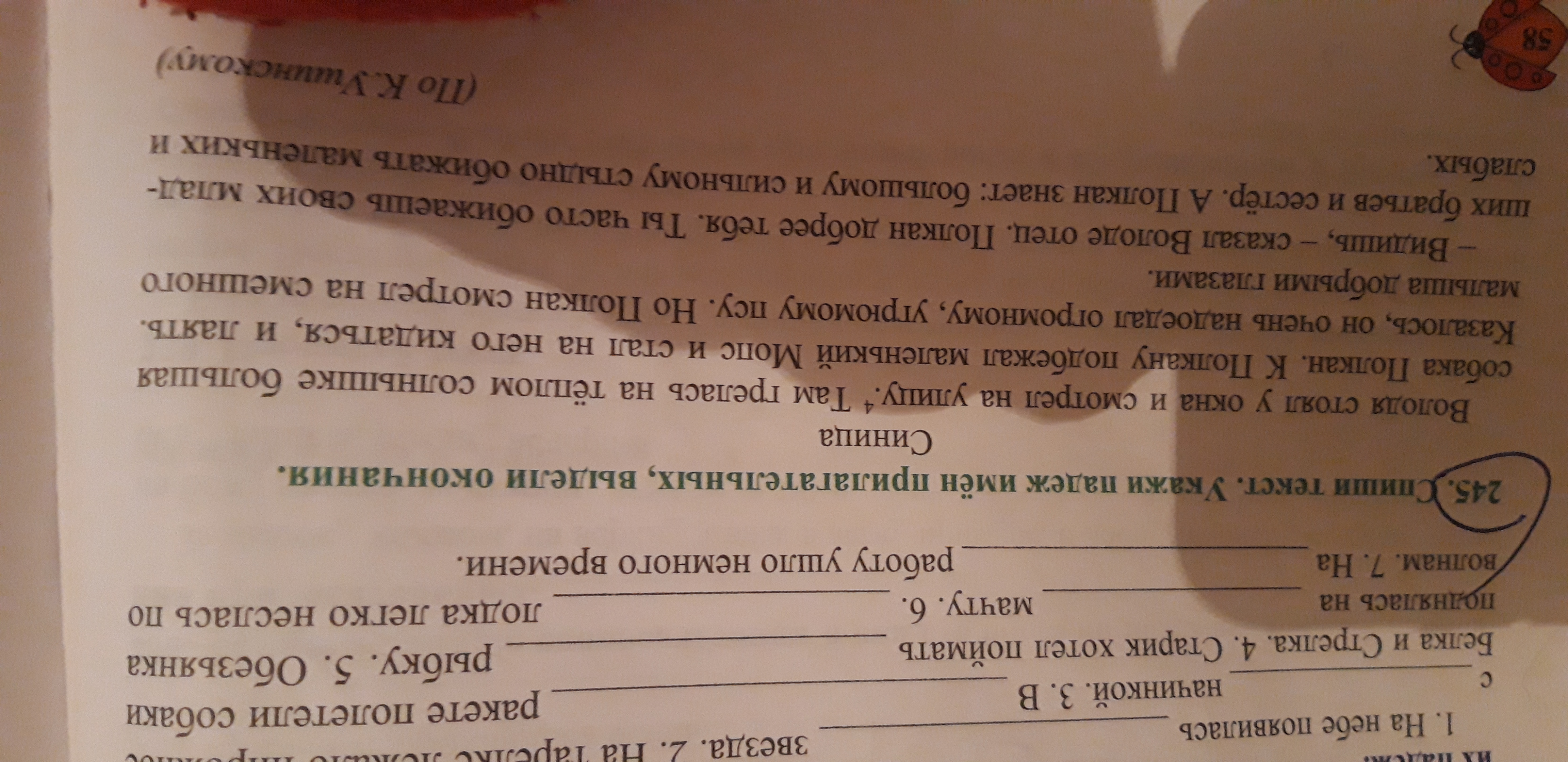 245. Маленький (И.п.) Мопс;огромному(Д.п).угрюмому(Д.п.) псу;На смешного(Р.п.)малыша;добрыми(Т.п.)глазами;младших(Р.п.)братьев;большому(Д.п.) и сильному(Д.п.)